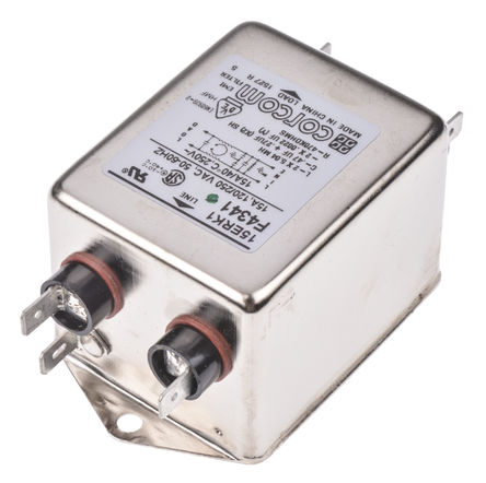 CORCOM - TE CONNECTIVITY 15ERK1 Power Line Filter, Chassis, 0.741µF, 250VAC, 15A, EMI, RFI, Quick Connect, 5.04mH